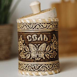 Отличный контейнер из бересты для хранения Соли. Входит 450 грамм Соли. Крышка и донышко выполнены из сибирского кедра. Влагостойкий, дышащий и при этом бактерицидный материал береста, сохранит продукты в лучшем виде.- Новинки