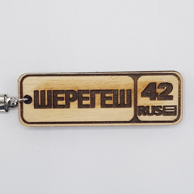 Брелок Шерегеш Номерной знак Гравировка фанера 6*2